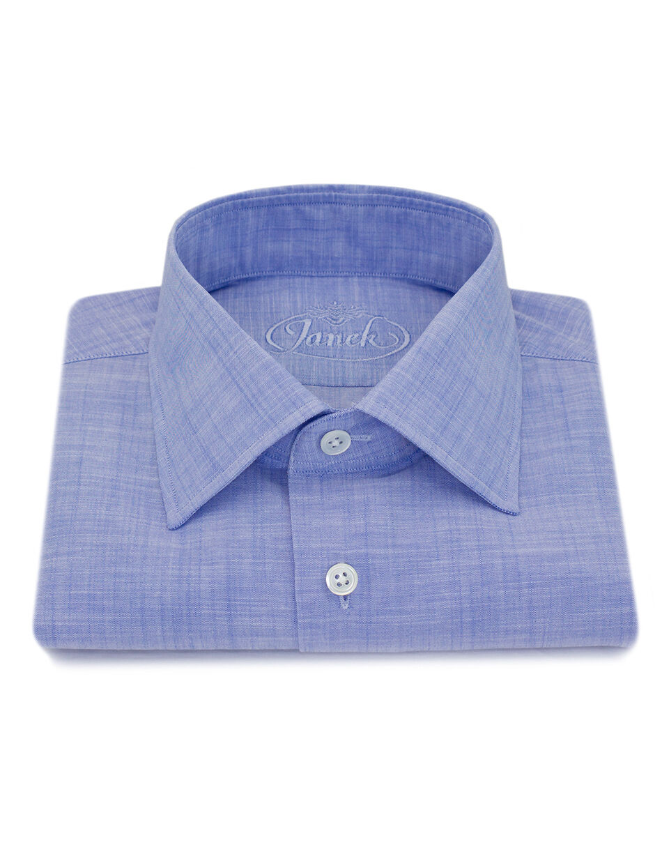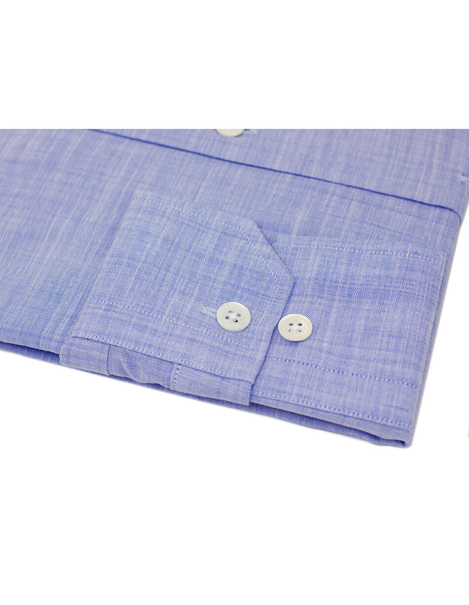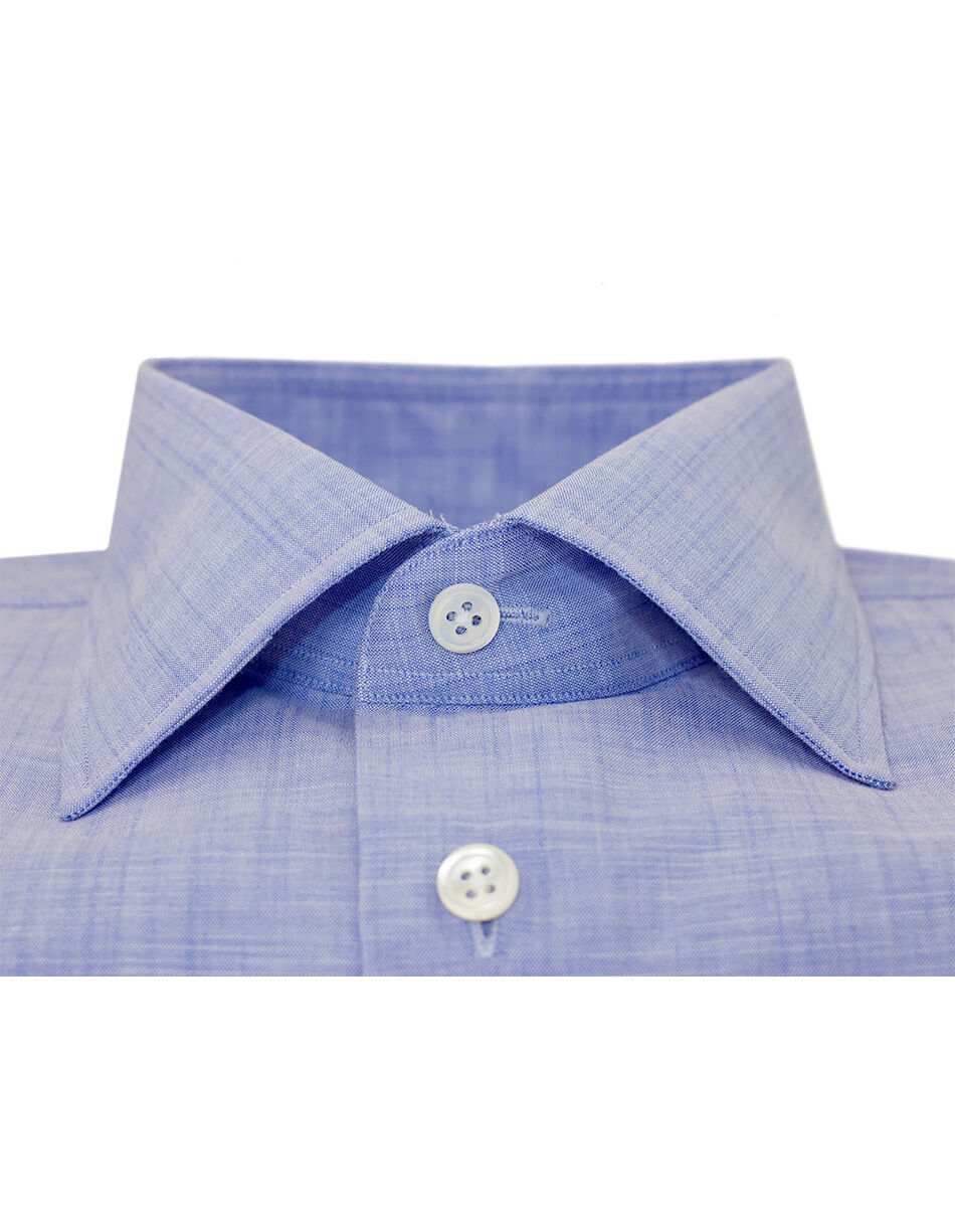 The highlighted blue shirt has a timeless and elegant Kent collar that suits a variety of face types and can be worn with any style of suit. The shirt is made of 100% cotton from the luxury Italian fabric manufacturer Albini. The real mother-of-pearl seashell buttons are a beautiful addition to this shirt.
