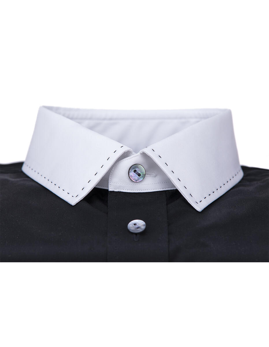 Tato černá hladká košile s kratším límečkem Tiny a pravými perleťovými knoflíky se vyznačuje hlavně kontrastními prvky jako je bílý límec s černým prošitím a bílé manžety. Látka ze 100% bavlny od českého výrobce Mileta s hladkým povrchem Vám dodá pocit jedinečné jemnosti. Poplin je látka tkaná hustěji, kdy jsou jednotlivá vlákna tenčí a proto je jich na m2 více než u běžných bavlněných pláten (111 gr/m2). Jelikož se jedná o 100% přírodní materiál, tak je tato tkanina vhodná třeba právě pro alergiky.
